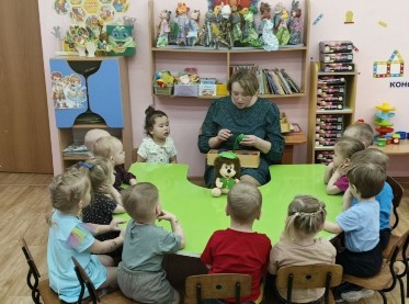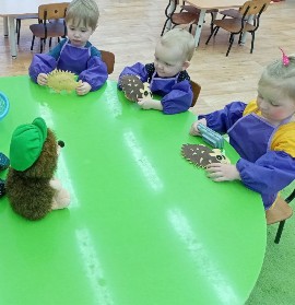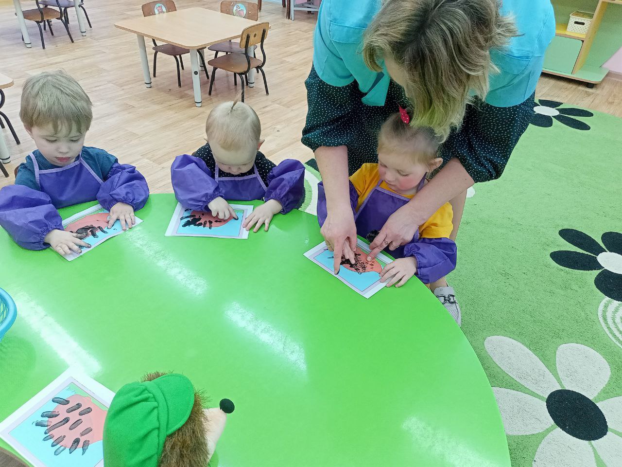 В 1 группе раннего возраста «Ягодка» прошло интересное путешествие в мир ежей. В группу к ребятам приходил ёжик, с ним они играли, делали пальчиковую гимнастику, рисовали ёжику иголочки. Ребята узнали о том, что ёж это дикое животное, и живёт в лесу. На спине он носит острые иголки, они спасают его от врагов. Любит кушать червячков, насекомых, ягоды.